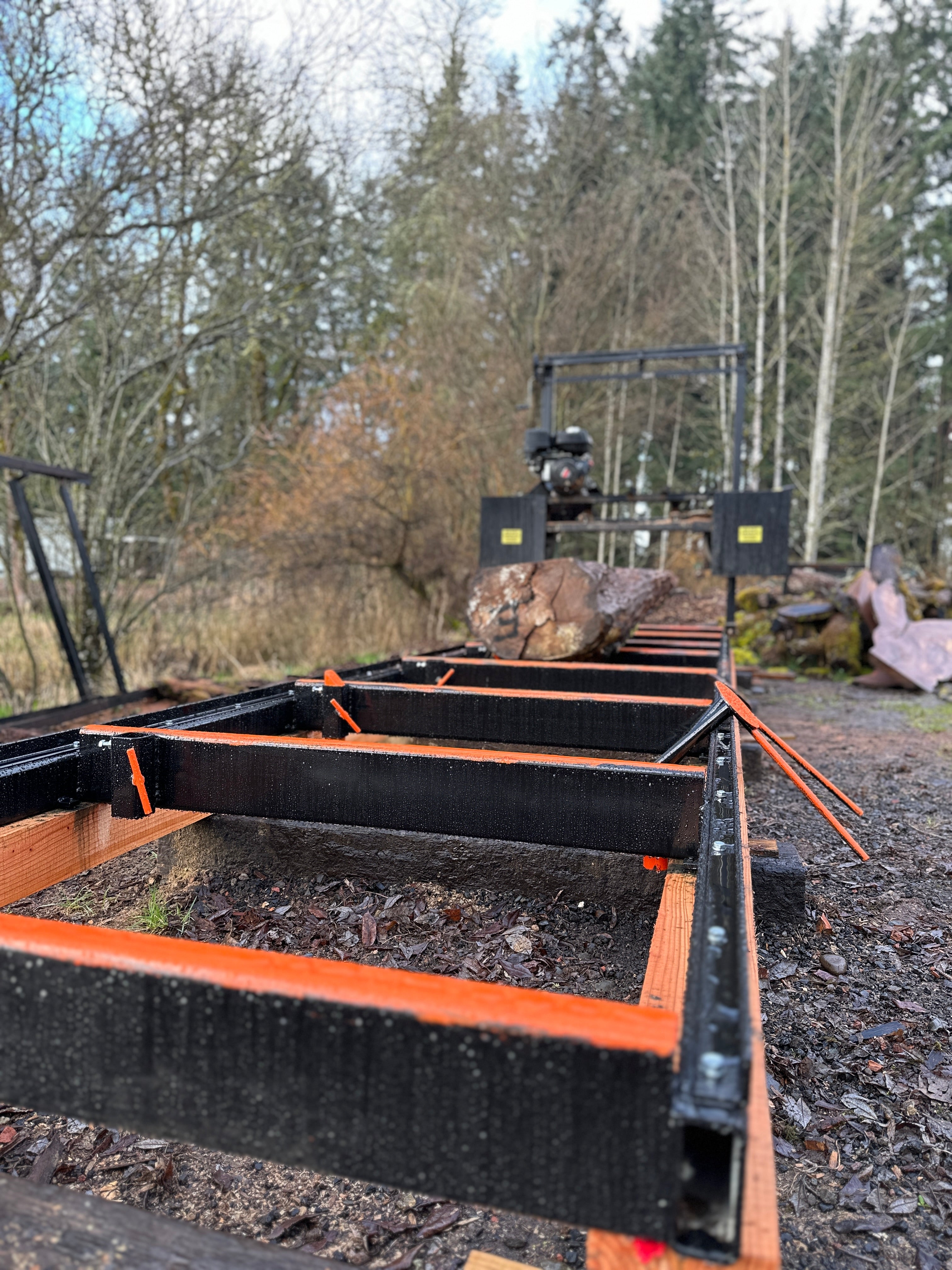 Our second and newest mill is set up for a 36" wide by 37' max cut for timbers.
